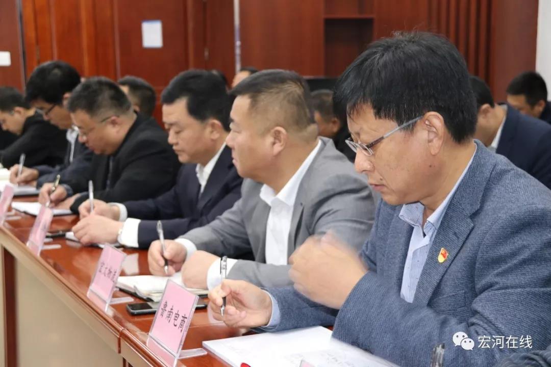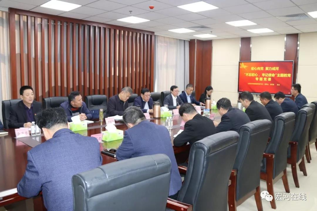 11月4日,按照“不忘初心、牢記使命”主題教育要求,宏河集團(tuán)組織開展主題教育專題黨課。集團(tuán)黨委書記、董事長(zhǎng)、總經(jīng)理張文為集團(tuán)黨員干部上了一堂題為《宏心向黨 聚力成河》的專題黨課。 市政協(xié)常委、市委第十三巡回指導(dǎo)組周建民組長(zhǎng)、成員仲繼偉列席督導(dǎo)。集團(tuán)黨政班子成員、各公司主要負(fù)責(zé)人(兩礦專職副書記)、各部室副科級(jí)以上管理人員近60人參加黨課學(xué)習(xí)。