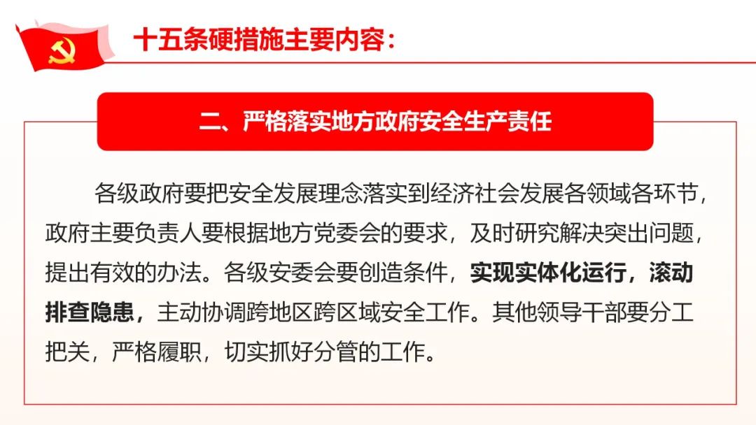 要緊緊圍繞貫徹落實(shí)習(xí)近平總書記關(guān)于安全生產(chǎn)重要指示精神和黨中央、國務(wù)院決策部署。推動貫徹執(zhí)行國務(wù)院安委會關(guān)于加強(qiáng)安全生產(chǎn)工作的十五條硬措施。重點(diǎn)檢查以下內(nèi)容∶ (一)地方黨委安全生產(chǎn)責(zé)任落實(shí)情況。地方各級黨委是否自覺承擔(dān)起"促一方發(fā)展、保一方平安"的政治責(zé)任,是否按照《地方黨政領(lǐng)導(dǎo)干部安全生產(chǎn)責(zé)任制規(guī)定》嚴(yán)格落實(shí)"黨政同責(zé)、一崗雙責(zé)、齊抓共管、失職追責(zé)"要求。黨委主要負(fù)責(zé)人是否主持黨委常委會會議分析安全生產(chǎn)形勢、研究安全生產(chǎn)重大問題,切實(shí)加強(qiáng)安全生產(chǎn)工作的組織領(lǐng)導(dǎo)等。 (二)地方政府安全生產(chǎn)責(zé)任落實(shí)情況。各級政府是否把安全發(fā)展理念落實(shí)到經(jīng)濟(jì)社會發(fā)展各領(lǐng)域、各環(huán)節(jié),主要負(fù)責(zé)人是否根據(jù)地方黨委會議的要求及時研究解決安全生產(chǎn)突出問題并主動協(xié)調(diào)跨地區(qū)、跨區(qū)域安全生產(chǎn)工作,其他領(lǐng)導(dǎo)干部是否切實(shí)抓好分管行業(yè)領(lǐng)域安全生產(chǎn)工作、安委辦運(yùn)行情況等。 (三)部門安全監(jiān)管責(zé)任落實(shí)情況。各有關(guān)部門是否按照"管行業(yè)必須管安全、管業(yè)務(wù)必須管安全、管生產(chǎn)經(jīng)營必須管安全"和"誰主管、誰負(fù)責(zé)"的原則依法依規(guī)提出并落實(shí)安全責(zé)任清單,是否按照"誰主管誰牽頭、誰為主誰牽頭、誰靠近誰牽頭"的原則及時明確職能交叉以及新業(yè)態(tài)風(fēng)險的安全監(jiān)管責(zé)任。是否推動?;贰⑷?xì)狻⒌缆愤\(yùn)輸、電動自行車等有關(guān)部門抓實(shí)全鏈條安全監(jiān)管,是否對關(guān)系安全生產(chǎn)但是已經(jīng)下放的事項開展評估等。 (四)領(lǐng)導(dǎo)責(zé)任和監(jiān)管責(zé)任追究情況。各地區(qū)是否追究較大以上生產(chǎn)安全事故中不履行職責(zé)的黨委政府領(lǐng)導(dǎo)責(zé)任、有關(guān)部門監(jiān)管責(zé)任,發(fā)生重特大生產(chǎn)安全事故的是否追究主要領(lǐng)導(dǎo)責(zé)任,對嚴(yán)重違法違規(guī)行為沒有采取有效措施甚至放任不管、構(gòu)成犯罪的是否移交司法機(jī)關(guān)追究刑事責(zé)任等。 (五)企業(yè)主要負(fù)責(zé)人履行第一責(zé)任人責(zé)任的情況。企業(yè)法定代表人、實(shí)際控制人、實(shí)際負(fù)責(zé)人是否嚴(yán)格履行安全生產(chǎn)第一責(zé)任人的法定責(zé)任,是否嚴(yán)格落實(shí)重大危險源安全包保責(zé)任制、礦長帶班下井等制度,是否搞"掛名礦長"等弄虛作假手段逃避責(zé)任,對重特大事故負(fù)有責(zé)任的是否落實(shí)行業(yè)禁入相關(guān)規(guī)定等。 (六)開展安全風(fēng)險隱患排查整治情況。各地區(qū)、各有關(guān)部門和單位是否列出重大安全風(fēng)險隱患清單并明確要求、壓實(shí)責(zé)任、限期整改,是否嚴(yán)厲查處人員密集場所封閉安全出口、封閉疏散通道等違法行為,是否由省、市級安委會或中央企業(yè)總部掛牌督辦重大隱患,對拒不整改的是否停產(chǎn)停工、追究刑責(zé)。對基層難以解決的問題是否及時報告等。 (七)項目審批安全紅線把守情況。各有關(guān)部門是否建立完善安全風(fēng)險評估論證機(jī)制。是否存在"邊審批、邊設(shè)計、邊施工"情況,是否擅自降低危化品、礦山、煙花爆竹、建筑施工、冶金等行業(yè)高危項目、人員聚集場所安全門檻,是否對東部沿海地區(qū)向中西部地區(qū)轉(zhuǎn)移的部分傳統(tǒng)行業(yè)嚴(yán)格安全監(jiān)管等。 (八)違法分包轉(zhuǎn)包、掛靠資質(zhì)行為查處情況。各有關(guān)部門是否嚴(yán)厲查處高危行業(yè)違法分包轉(zhuǎn)包行為。是否嚴(yán)肅追究發(fā)包方、承包方法律責(zé)任,是否嚴(yán)格追究生產(chǎn)安全事故中資質(zhì)方責(zé)任,央企國企總部是否建立專業(yè)化技術(shù)管理團(tuán)隊加強(qiáng)對下屬企業(yè)的指導(dǎo)、監(jiān)督、考核、懲處等。 (九)勞務(wù)派遣和靈活用工人員安全管理情況。生產(chǎn)經(jīng)營單位是否將接受其作業(yè)指令的勞務(wù)派遣人員、靈活用工人員納入本單位統(tǒng)一管理,危險崗位是否嚴(yán)控勞務(wù)派遣員工數(shù)量,有關(guān)部門是否對相關(guān)情況較突出的行業(yè)領(lǐng)域部署開展重點(diǎn)執(zhí)法檢查。央企國企在有關(guān)人員管理上是否發(fā)揮示范帶頭作用等。 (十)"打非治違"工作開展情況。各地區(qū)、各有關(guān)部門是否組織開展"打非治違"專項活動,是否采取精準(zhǔn)措施嚴(yán)厲打擊礦山違法盜采、油氣管道亂挖亂鉆、客車客船漁船和?;贩欠ㄟ\(yùn)營等各種典型非法違法行為。是否依法依規(guī)從重懲處頂風(fēng)作案、屢禁不改以及監(jiān)管不到位等問題,是否加大曝光警示力度,是否堅決打擊違法行為背后的"保護(hù)傘"、加大"貓鼠一家"腐敗行為查處力度等。 (十一)執(zhí)法檢查寬松軟整治情況。安全生產(chǎn)監(jiān)管執(zhí)法是否存在選擇性執(zhí)法以及寬松軟、走過場等問題。是否確定省市縣三級執(zhí)法管轄企業(yè)名單并明確重點(diǎn)檢