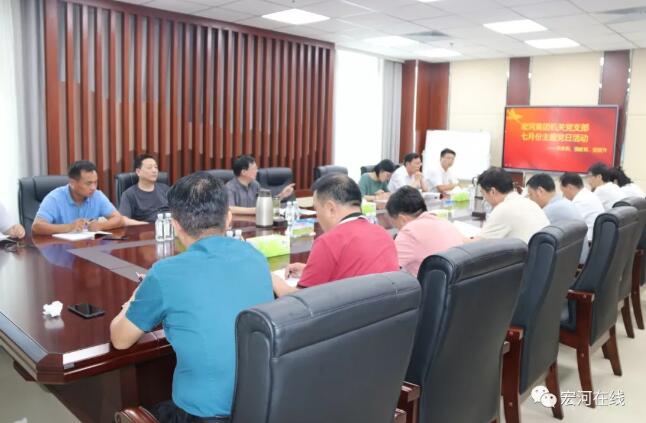 7月29日,學條例、強教育、促提升——宏河集團機關黨支部七月份主題黨日活動在集團總部24樓1號會議室開展。機關黨支部全體黨員、入黨積極分子30余人參加學習,集團黨委副書記、副總經理、機關黨支部書記朱玉忠主持會議。